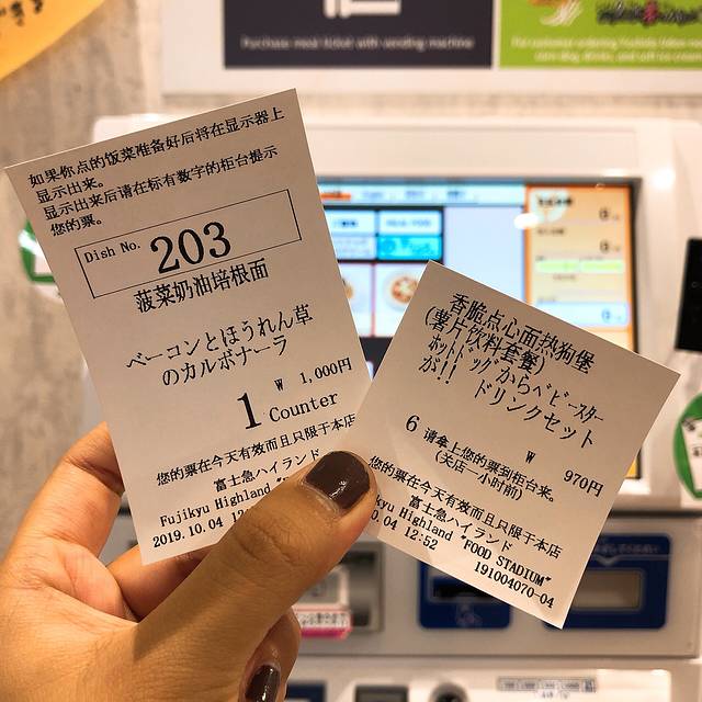 🔸小票上会有显示菜品名称、取餐柜台、取餐号码,前往指定的柜台等服务员叫号,凭小票取餐即可。