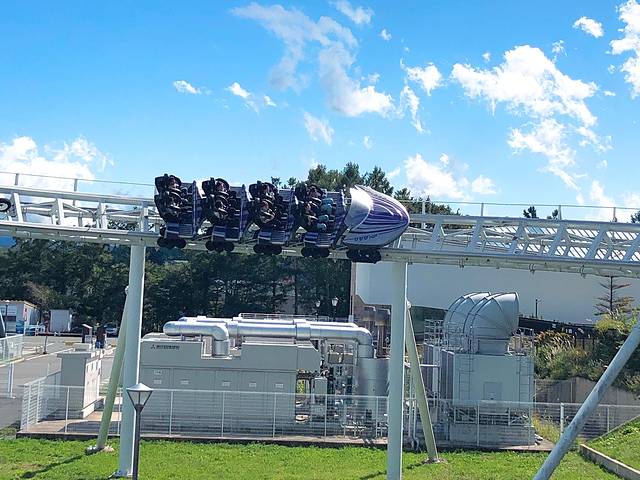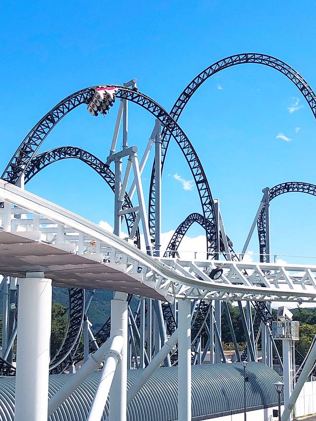 🔸过山车需要呈90度向上攀升,到达最高点之后定住几秒钟,可以美美地看几眼富士山,然后猝不及防地再呈120度向下滑落,再转圈,翻转,一阵狂飙之后迅速刹车,还没反应过来就已经结束了😂。下车后脑袋晃的晕晕的……