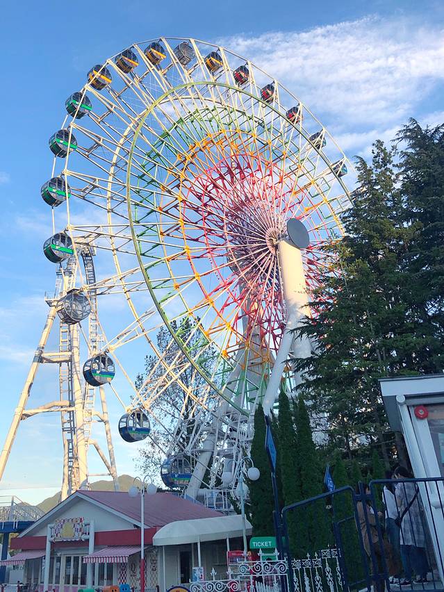 🔸作为一个优质的游乐园,当然必须要有摩天轮呀,坐在上面可以俯瞰整个游乐园,还能静静地看着富士山,感觉还是不错的~摩天轮有分为普通车厢和透明车厢,普通车厢最多可坐4人,排队速度非常快;还有玻璃车厢,最多只能坐2人,每个3分钟才有一个玻璃车厢。