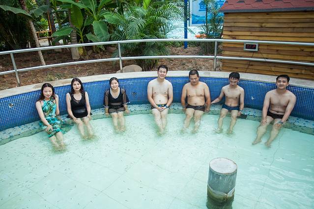 光泡温泉还是不够的呢,这不小编发现了一个瘦身浴池,全身涂满泥巴,进行各种的游戏。这边还有一个,鱼料浴池,一条一条的小鱼在水中游来游去,你一动不动,小鱼会身边亲吻着肌肤,又氧又舒适。泡够了,和几个好友相约在紫气东来浴池中,坐在椅子上享受惬意生活。