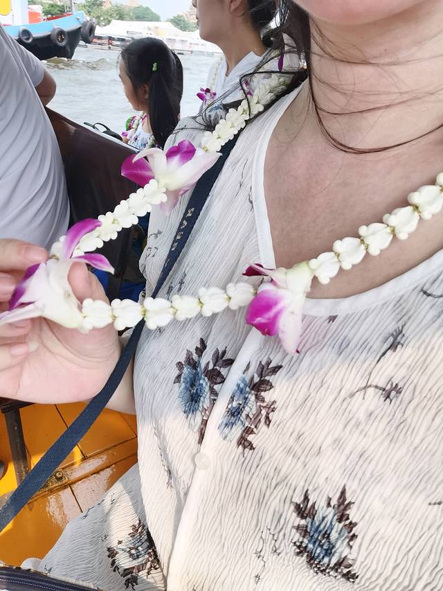 上船后,船家会赠送每位游客这个花环,当然记得付20泰铢的小费哦