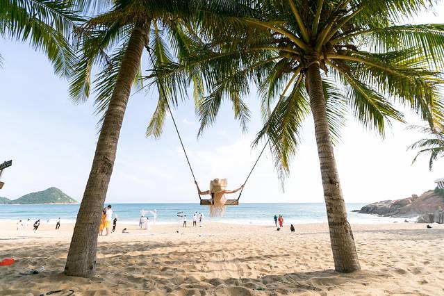 呆呆岛的海滩,沙细,海水碧蓝,这里还有椰树秋千、复古小汽车、白色教堂、古渔船等等。不要着急,继续往下看,随手一拍自带ins风的海滩,情侣、闺蜜、一个人都适合!