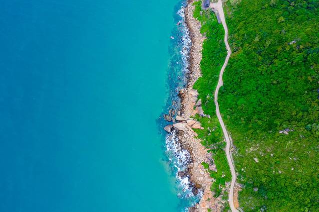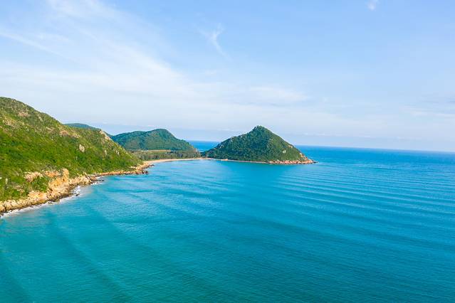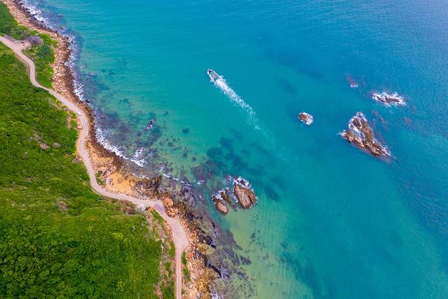 从猴岛去呆呆岛,要乘坐景区的中巴车前往,其实两座岛是相连的,中巴车行驶在靠海公路上,看着远处一望无际的海,心情格外舒畅。