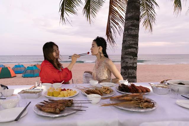 阳光、沙滩、网红打卡地、一望无尽的海岸线、典型气候造就的椰树林。白天,一起烧烤、戏水、享受日光浴。