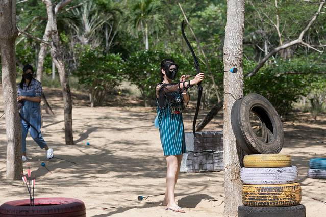 椰林攻防箭太好玩了。融合了闪避箭和射箭,回到冷兵器时代,弓箭带来的紧张感,箭从耳旁的破风声,肾上腺激增的瞬间射出一箭。这种项目真的趣味性极强,而又充满挑战!