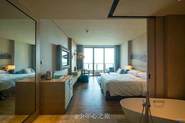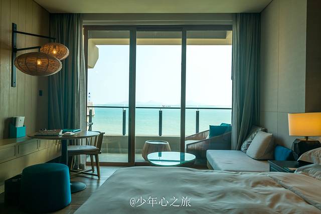 躺在床上就能看到蔚蓝的大海和天空,闭上眼睛就能听到海浪“欢呼雀跃”的声音,推开玻璃门就能迎来温润的海风,住一次高质量的海景房,绝对是海边度假最好选择,有种什么都不做,江山美景已在你脚下的满足感。