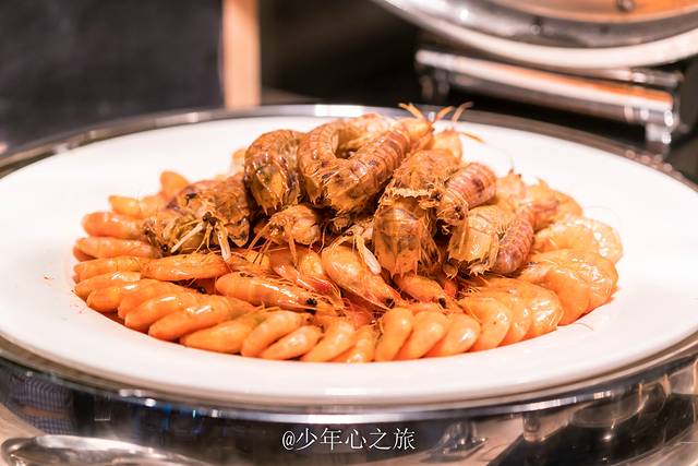 整齐的基围虾有序的排列着,上边叠放着一只只皮皮虾也相当诱人,海螺、扇贝、生蚝、三文鱼,各种海鲜品种琳琅满目,希尔顿酒店占据着有利的地理位置,就地取材将新鲜的海鲜食材搬上桌面,海边海鲜的新鲜度毋庸置疑,最佳的口感也只有这些海边城市才能尝到。