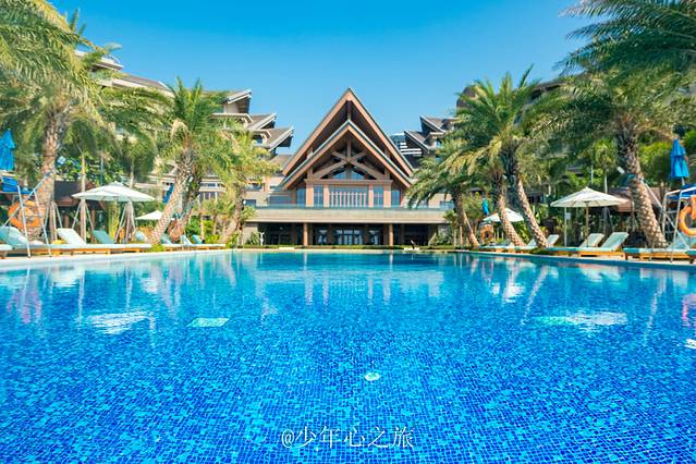 度假酒店的一大好处,就是足不出户也可以在酒店里玩两三天,希尔顿的后花园,就是这么一片能放飞自我的地方,从这个角度看希尔顿,就像一艘即将扬帆起航的巨型船只,也像张开翅膀的雄鹰,雄伟壮观。随处可见的棕榈树,极具东南亚风情,无论是戏水池还是无边泳池,都有一种无可比拟的诱惑。