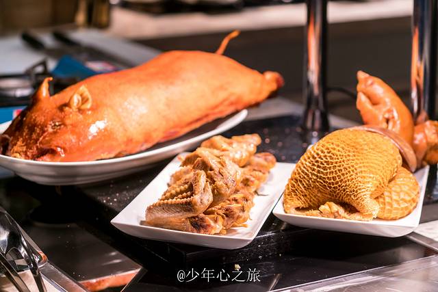 当然少不了的还有各种广式烧鸭烧鹅,以及各种中式菜肴,如果你喜欢吃日本的寿司,这里也有,甜点和饭后水果都是无限量自助的,每次来吃自助餐,都恨不得自己有几个胃,能将这些美食一网打尽。