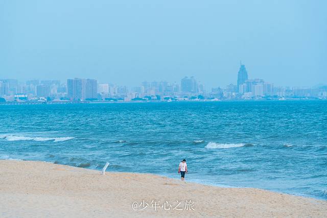无边泳池再往前走几步,就是金町湾沙滩了,蔚蓝的海水,细腻的沙滩,原生态无污染,这里的水质丝毫不比惠州巽寮湾的差,但人却更少,可以拍出“一个人承包了整片沙滩”系列的照片,也可以在海边画下一个个笑脸,远眺海中央,时不时有一艘艘渔船穿行而过,有种广阔天地任我穿行的快感。