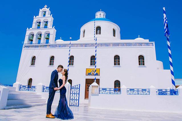 圣托里尼很少有酒店承办婚礼的,因为当地人都是在教堂举行婚礼新人圣托里尼的婚礼一般都是悬崖海景婚礼。去 圣托里尼 之前一直在纠结场地,总怕实际场地和照片差太远,后来发现真的是想多了。圣岛几乎所有的悬崖酒店都是正对 爱琴海 且无遮挡视野巨好,所以其实如果你只是想对着 爱琴海 宣誓,任何一个地方都能满足你的要求。
