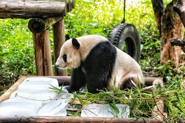 下来缆车去了熊猫馆,试问不管是男女还是老少,谁能抵得过大熊猫的魅力呢,广州的夏季连熊猫都热的够呛,工作人员还专门在熊猫的活动区域放了冰块,可以说很贴心了,真的把熊猫当成自己的孩子来照顾