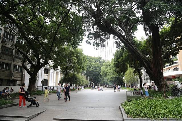 沙面岛是曾经的法租界,这里的建筑也大多是西式风格,道路两年的大榕树看起来有些年份了,有很多当地人都会带着孩子来这边玩耍