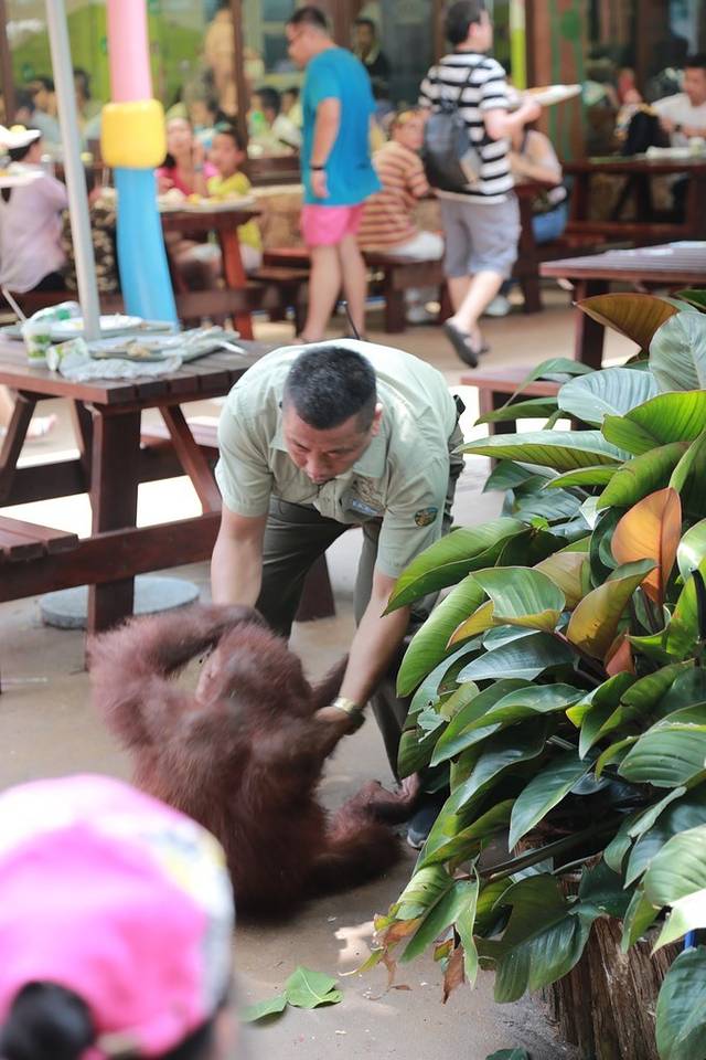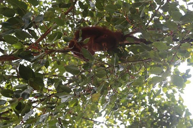 路上偶遇的两只红毛猩猩,猩猩真的是丑萌丑萌的,还有一只调皮的猩猩偷吃游客剩下的东西被工作人员给训斥了一顿