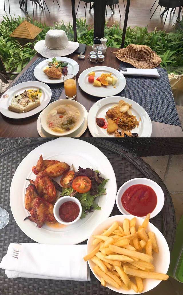 这次入住3天两夜,试了酒店的自助餐厅和晚餐自助餐,自助餐厅的view非常好,外面就是沙滩和大海,采光一级棒。食物类别丰富,强烈推荐煎蛋,超级赞。晚餐就一般般了,喜欢吃的海鲜类型很少,而且贵,不建议。