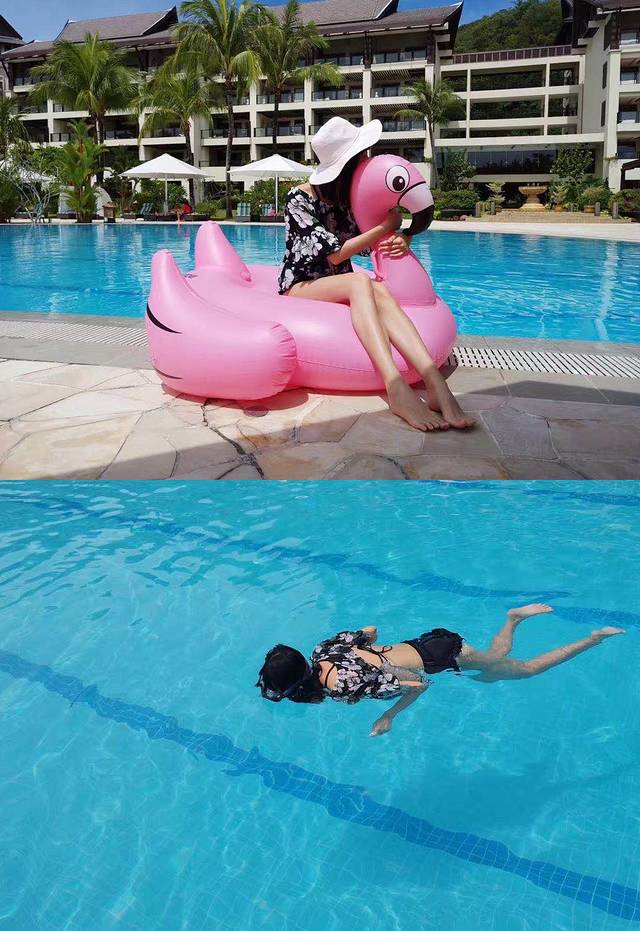 酒店泳池畅游是免费的,比较好笑的是这次专门带着网红INS单品的火烈鸟到泳池拍照,但是救生员死活不让我们把火烈鸟带下水,迫于无奈只能在泳池边拍拍照哈。泳池可以点小吃和饮品,我们随便点了一份炸鸡翅和薯条,味道也不错。