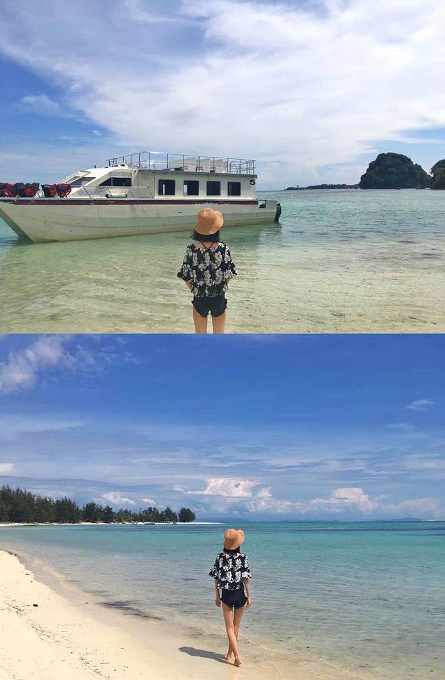 工作人员会开着小飞艇载着我们到岛内,大海有深浅不一样的蓝色,岛上很安静,游客还算比较少,有标志性的美人鱼岛的装饰牌提供拍照。岛上有皮艇可以出租,和小伙伴们划皮艇。
