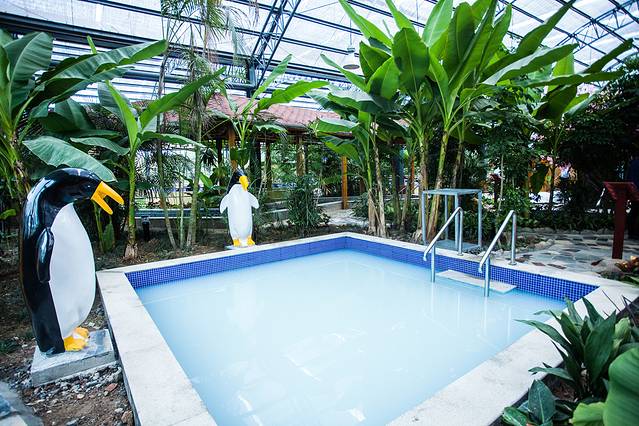 入住山庄之后,绿化优美的山庄以及视野宽阔场面,给人一种惬意的“慢”生活。先是打卡了入住的房间,小编办理的是五层楼的标准间,房间宽敞,整洁且没有什么异味。然后打卡了老子山的温泉,它距离住宿步行需要五分钟的路程,属于阳光型的室内温泉,打开门进入一刹那仿佛去了东南亚热带雨林之中,烟气撩撩,所有的浴池被树木以及花草包围其起来,最重要的是这边的泉水是天然的地下开采出来,水温保持在63℃,仔细闻有一股淡淡的臭鸡蛋味道。不仅如此,室内还有一个大型的泳池,深浅不一可以畅快的游在水中。
