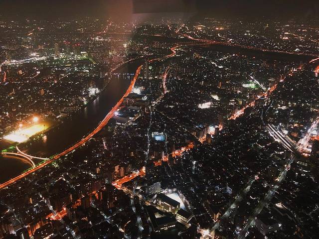 🌃直至整个天空黑得只剩下寂寞的星星✨,整个东京城的夜景🌃全都展露出来了,整片城市的夜灯都亮起来,一闪一闪超漂亮,而车水马龙的街道,像一条银龙在城市里穿梭~