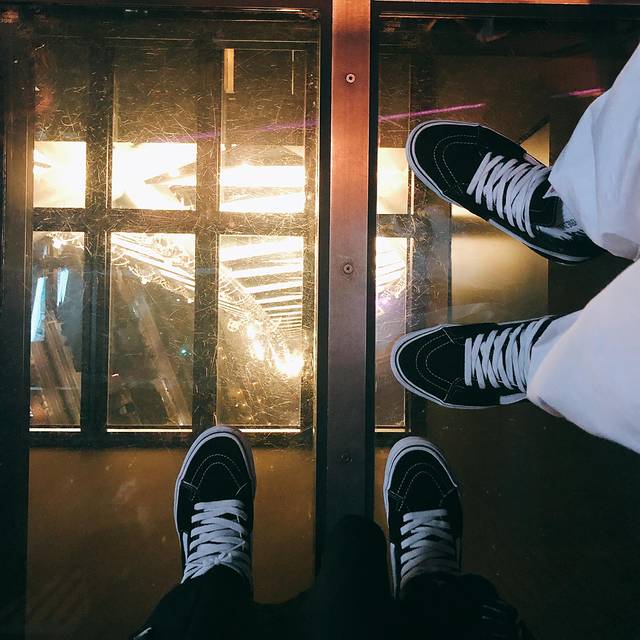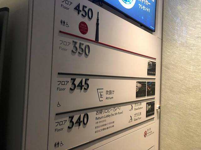 🌆跟着指示走,有序排队到达晴空塔的最顶端——450米的天望回廊。在乘坐这个电梯的最里面顶部,是一个透明的玻璃,可以看到晴空塔内的结构。