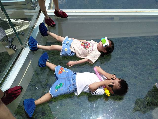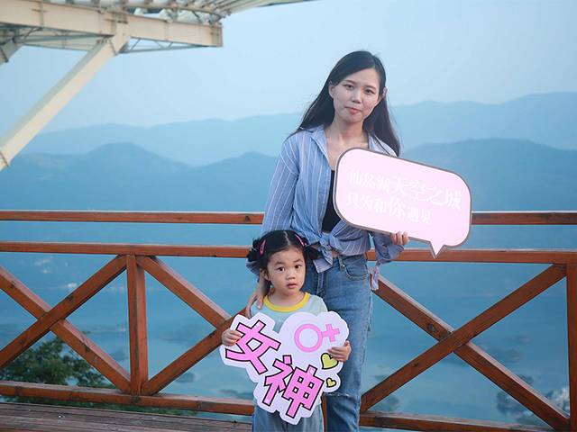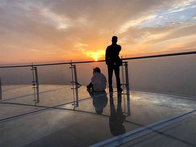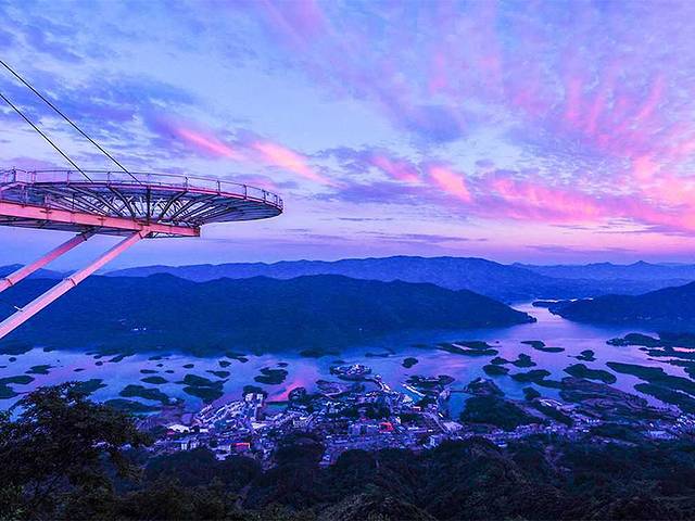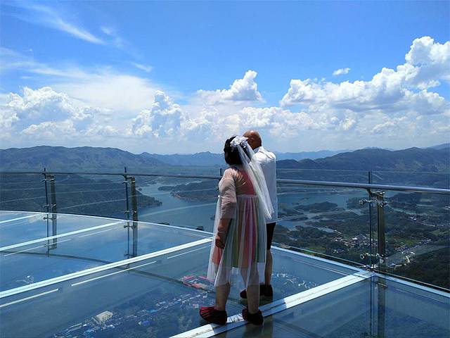 一脚踩在全透明的玻璃栈道上,就好像漂浮在高空,谁有勇气第一个往下俯看,真是要赞叹他的勇气!可真当你迈出了这一步,你会发现仙岛湖宛如盆景,360°无敌湖景,将山湖美景尽收眼底。