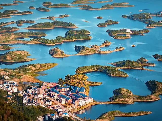 清晨,如果运气好,遇上太阳初升前的浓雾弥漫,处于云雾深处,如临仙境,随着太阳霞光慢慢照射进来,雾气渐渐散开,绿色的小岛似一条条绿豚引入眼帘,除了惊艳!离不开眼再去想其他东西~