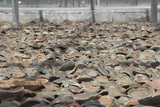 横峰窑址公园门外有一座天桥,青砖黄墙好似笔架。走过天桥就到了窑文化广场。窑文化广场地面依旧遗留着大量碗片,这些碗片形状各异,片片都在向人叙述当时的辉煌。横峰窑出产的瓷器虽然不像官窑那般精美,但实用性强十分接地气,大多生产人们日常生活的器皿。