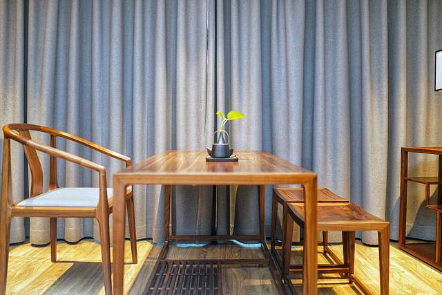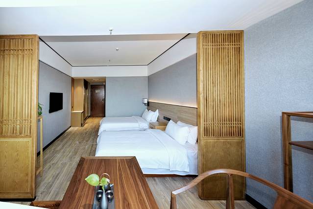 酒店前台的手续办理速度很快,笑容也很甜美,客房安排在4楼,走廊两侧都摆放着写意花鸟画,很符合这家酒店中式的格调,客房内也是很古朴的中式风格,木质屏风将休息区和休闲区隔离,休息区放置了一个中式茶桌并备有茶具,酒店的每一个细节都在强调着这家酒店的中式调性。客房内卫生打扫也很干净,让人很安心。