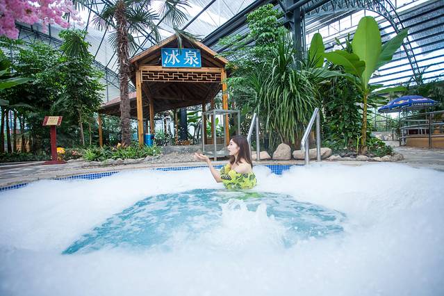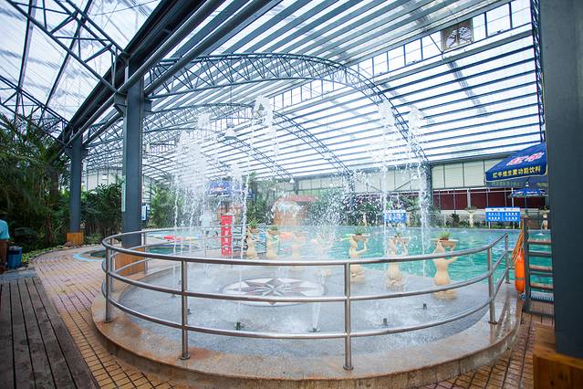 之后,我们就带着泳衣去泡温泉啦,这边的小姐姐穿着汉服为我们贴心的办理手续,随后,更换衣服,打开门的那一刻,哇~好美啊~(阳光型的室内温暖一点也不压抑)每一个浴池相间在花草树木之中,而且浴池中的温暖类型还不一样,有:花瓣浴、瘦身浴池、鱼料浴池、种草浴池等等这边还贴心的为孩子打造的儿童浴池,浅浅的水高度搭配上适合儿童的水温,可爱的卡通玩偶,满足孩子的闲不住的乐趣。