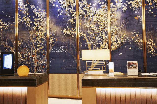 就连办理check in的柜台,背景壁画也一派生机勃勃的景致,精致又奢华。