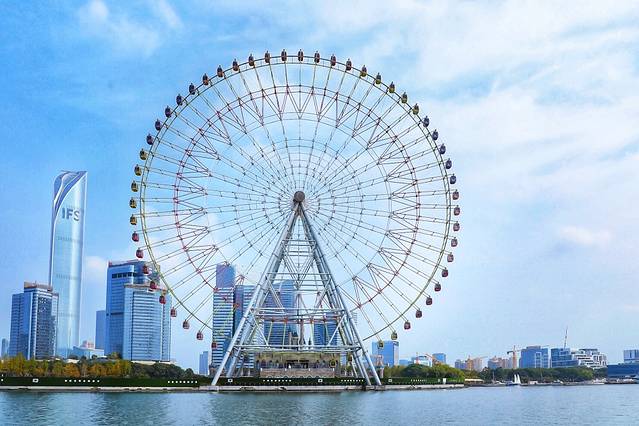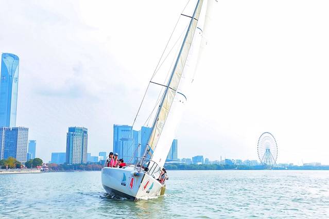 从房间往外俯瞰,能够看到金鸡湖的秀丽风景,坐拥优势地位的苏州园香,超级适合度假。午餐后我们相约来到湖边,感受秋日微风拂面,远处的摩天轮,东方之门(俗称“大秋裤”)都是最佳的拍摄背景,乘坐着帆船,跟随着风的方向,徜徉在金鸡湖畔,惬意又自在。