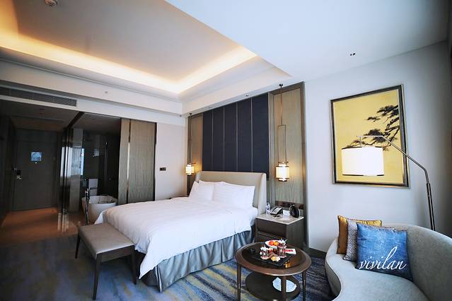 极具空间设计感的豪华客房,置身其中,能感受到一抹江南的温婉含蓄,壁画,沙发,再到地毯,巧妙融入其中,而敞开式的设计,合理布局整个空间,于视觉上增添了更多的新意。