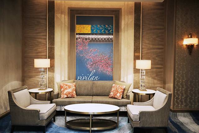 酒店里随处可见这样的休息区域,营造出一派雅致韵味,壁画,抱枕,布艺沙发,亲和力十足。