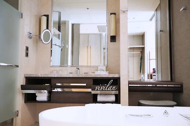 卫浴间干湿分离,超大浴缸可以缓解旅行一天的疲惫,同时一旁的梳妆台,让女性住客感受到更多的贴心细节,美妆时光也变得从容自在。