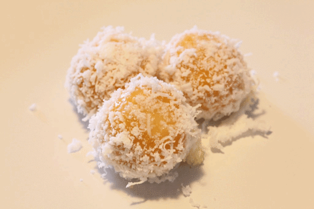 外面是浓浓的椰丝的香味儿,再配上松软的口感,就像有椰子味的mini小蛋糕,一口一个让人欲罢不能。