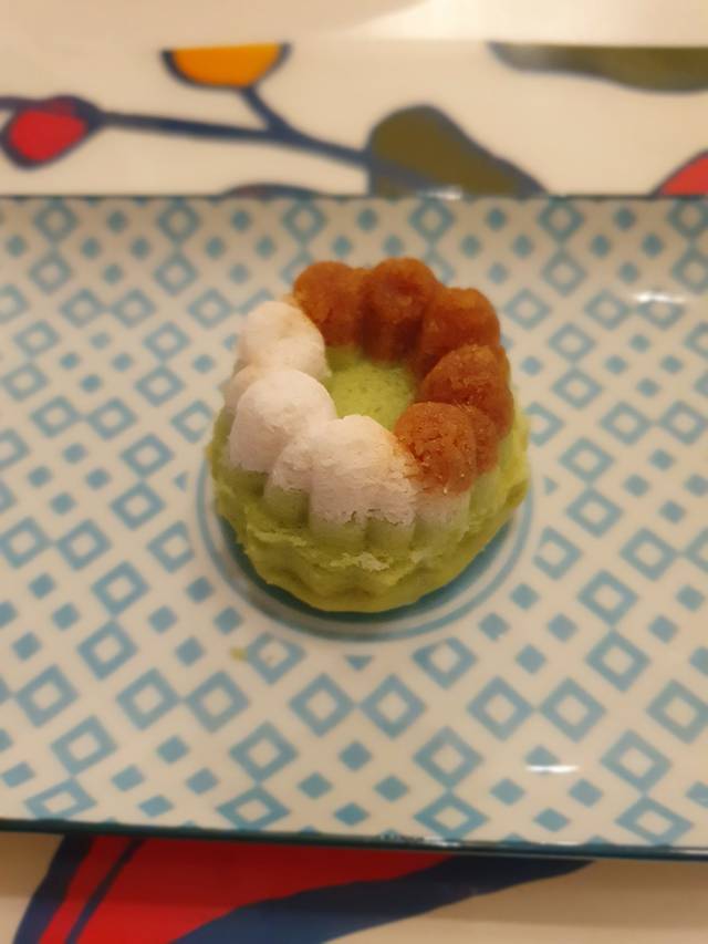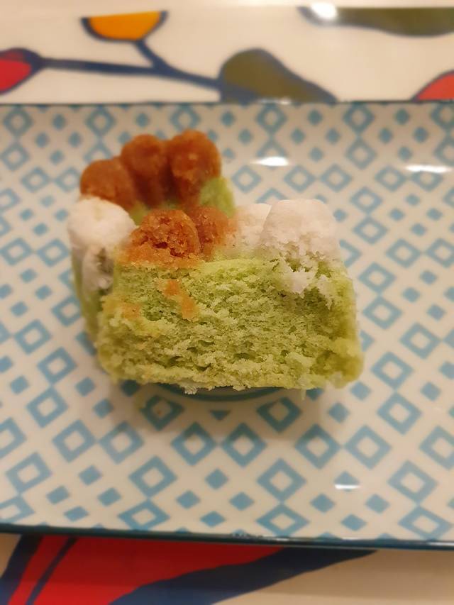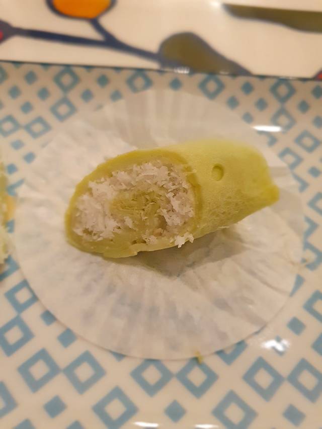 斑斓叶松糕键底 加上新鲜椰子再淋上淡淡椰糖,香味可口,一次可以吃上好几个。
