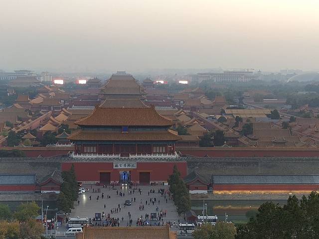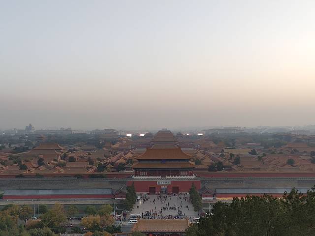 从故宫出来上景山山顶,鸟瞰故宫,落日余晖。感叹时间无声的作用,历史多少事,皆灰飞烟灭。人生苦短,追求正确价值观生活,丰富人生的回忆。