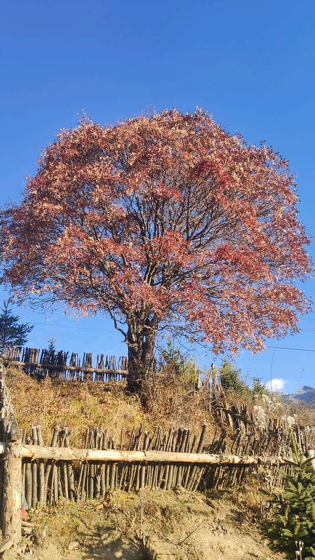 ❗奶子沟❗八十里彩林已经只剩下枯树和秃山,网红树“黑水花楸”还有点红色叶子。每年时节不一样,今年枫叶枯早了,去年11月中旬都还有,如果是为了看枫叶,去前先去蚂蜂窝等app问问最近去的人还能看到枫叶或者枫叶红了没有。