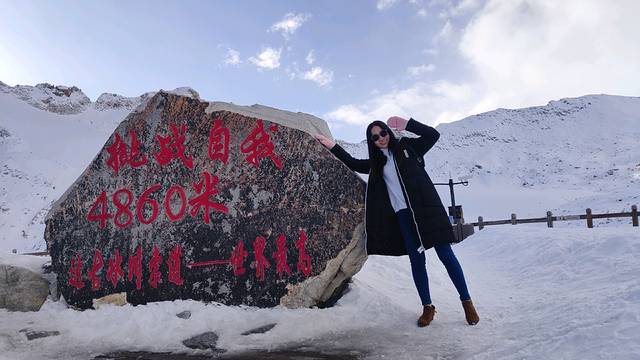 雪山上自恋照,白茫茫的一片,自身觉得好看,留个回忆。南方的姑娘第一次见雪