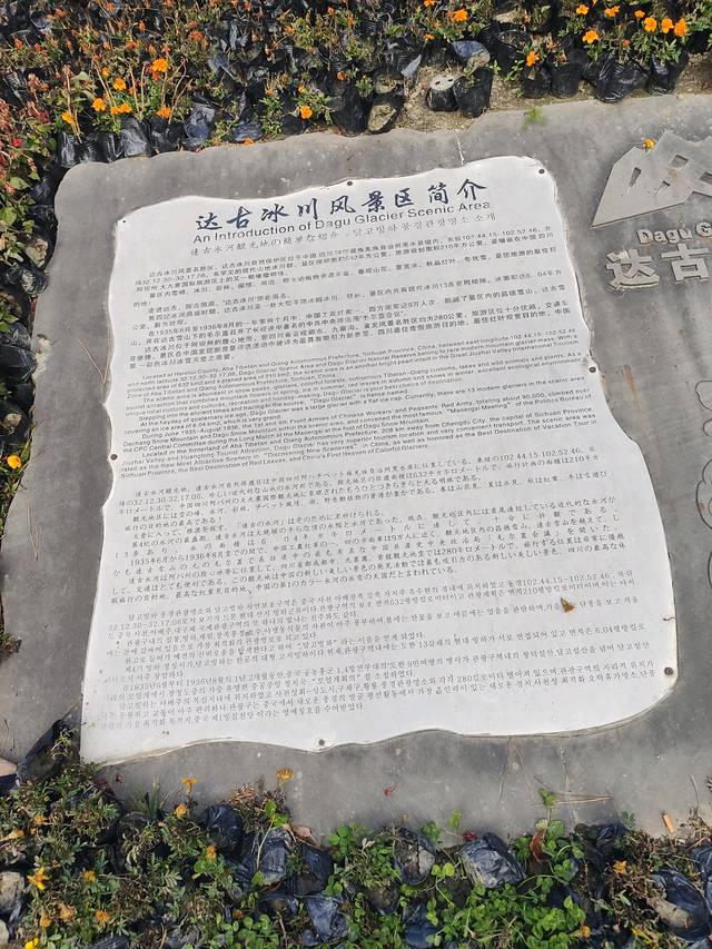 如果时间允许,不要来的第一天就去达古冰川,安排第二天再去。太晚了,我们1点半下车,赶回去客栈放行李,再去景点,2点30分左右买完票上山,5点半下山了,上下坐观光车到索道的时间得1个半小时左右,减去坐索道的时间,基本在山上玩的时间都不到1小时,就被催着下山了,来不及看达古冰川上的最高空中咖啡厅,来不及去泪湖,看金丝猴……起码有一半景点我们都来不及去,别说拍照了。这么精彩的景区,景色照片少得可怜,想了解去别的攻略看看,达古冰川真的超级美