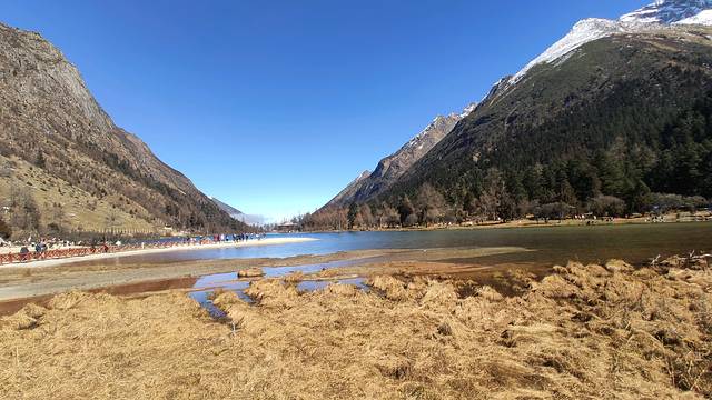 我们去到时候雪不是很多,在网上看到毕棚沟有滑雪场,估计是雪还够厚,滑雪场现在是一片枯萎的草地。