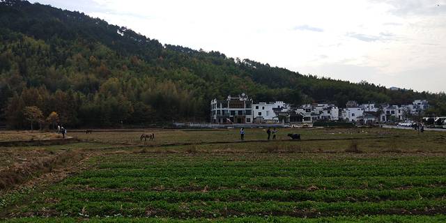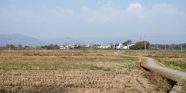 南屛村前的大片农田,农作物已收获地里只剩下割完稻子留下的割茬