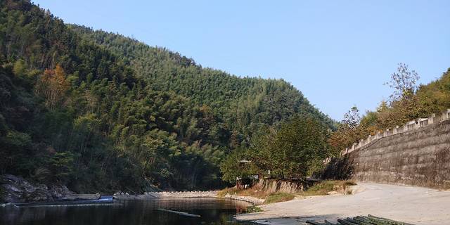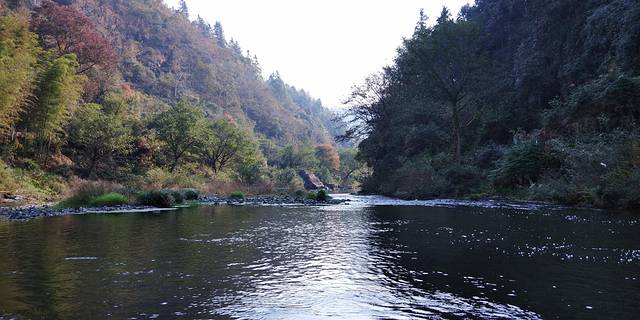 按计划游完黟县的景点,第四天一早驱车赶往歙县已订好的宾馆,徽州古城附近的锦江之星连锁酒店,计划顺道在S218路旁的“桃花溪”及S326路旁的齐云山景区停留游览。“桃花溪”是黟县通往黄山市区方向S218公路旁一条并行的溪流(这条溪流是横江的支流),溪流依山势蜿蜒曲折,溪边植物茂密,景色优美,5-10月时水流湍急时可以顺流而下漂流。齐云山地处黄山市休宁县境内,是国内著名的道教、佛教合一的圣山,古称白岳,风光秀丽。自唐代开始有道、佛两教道士、僧侣,开始在此建立道观、寺院传教修身,距今已有一千多年历史,齐云山内有月华街、云岩湖、楼上楼三个景区,有奇峰、岩洞、池潭、亭台、碑刻、石坊、石桥、庵堂祠庙等众多景点,是4A级景区。因时间关系,上述两个景都没购买门票漂流或进入景区游玩,只是沿途或在景区外拍照游览。