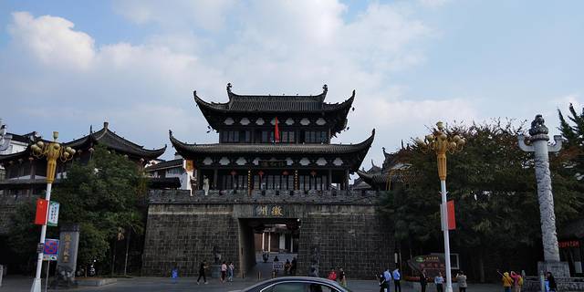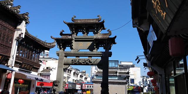 徽州古城原为古徽州府,古徽州的行政中心,始建于秦朝,自唐代以来,一直是徽郡、州、府衙所在地,故县衙与府衙同在一座城内,形成了城套城的独特风格,古城分内城、外廓,有东西南北4个门,此外还保留着瓮城、城门、古街、古巷等,城内景区包含徽园、渔梁坝、许国石坊、斗山街、陶行知纪念馆、新安碑园、太白楼等,古城是目前保存完好的中国四大古城之一。古城内现已是商业购物与旅游观光融为一体,只是个别重点区域或古老建筑物必须购票才可进入参观游览,其余大部分区域包括陶行知、徽班进京、新四军歙县联络站等展览都是免费开放的,古城街上游人不是很多。