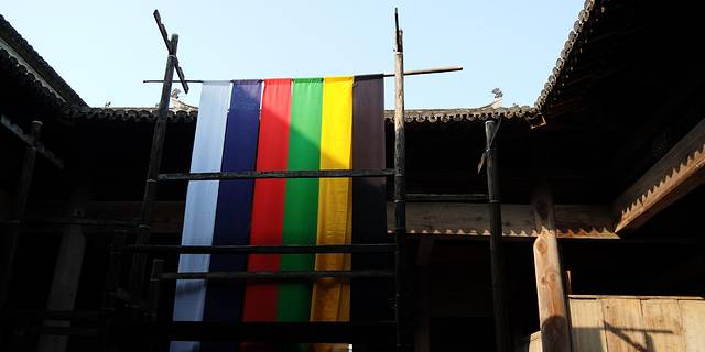 祠堂内至今仍悬挂着电影《菊豆》道具“印染布”的复制品,里面也还有其它电影的道具