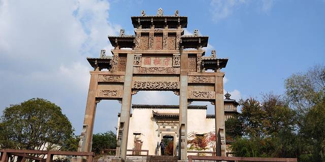 从南屏村出来,沿Y209公路继续前行不远就来到了守拙园景区,景区是《桃花源记》作者陶渊明后代居住的陶氏村落复建的,景区名称“守拙园”取自陶渊明诗句:“开荒南野际,守拙归园田”的诗句,景物集中浓缩,景区不大游人很少,完全按照皖南徽派建筑风格设计修复建设,网上票价30,景区内不像徽州其它古村落仍有村民居住,守拙园内已无住户,只供游客参观游览。景区内修复了原有古民宅、祠堂、学堂等老建筑,也新建了一些“无边水池”、“观光塔”等景点建筑物。