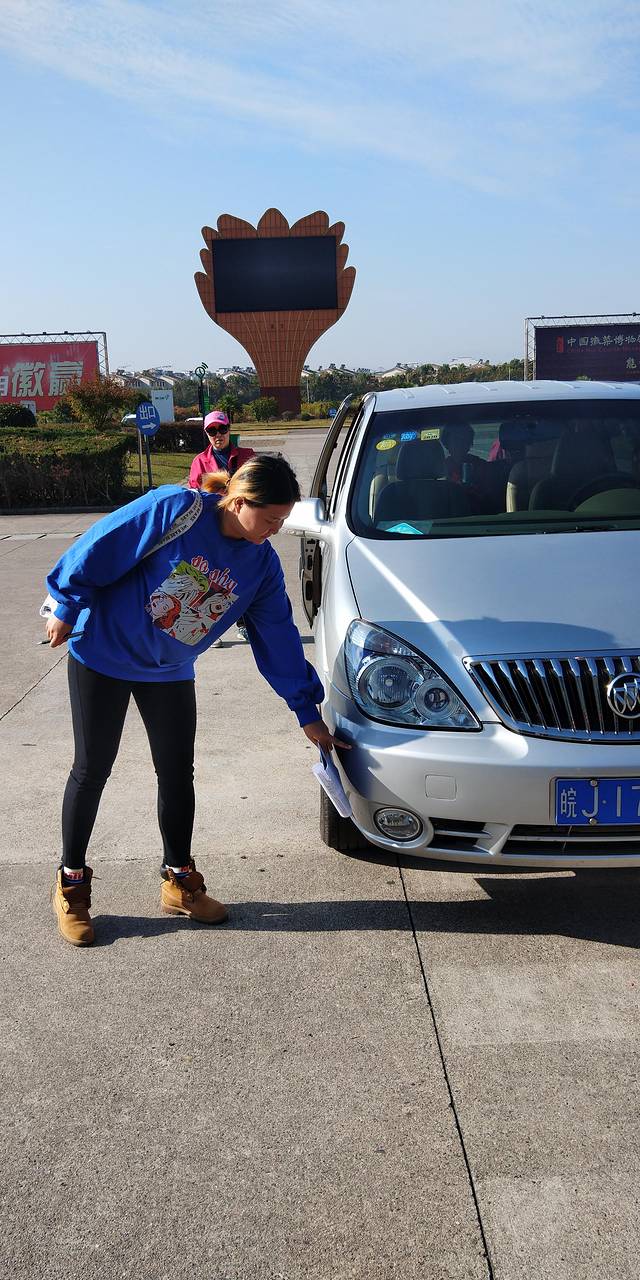 乘飞机从青岛直飞黄山屯溪机场,6:30航班,大家3、4点就起来赶往机场候机,飞行2个小时左右,到达屯溪机场,租的商务车还没到,于是大家在机场外打卡留影,车子来后,“司机们”仔细验车办理手续,熟悉车况时发现租的自动挡位车子是个“怀挡”车,驻车手刹也变成了“左侧脚刹”,这与平时的驾驶习惯有很大差异,但车况不错,交接手续也很简单,查验完毕后开车上路,十年以上驾龄的老司机了,对驾驶车子的适应能力还是很强的,先在市里转转,驱车直奔靠近黄山市政府的新安江滨江公园,饱览新安江两岸美丽风光,在一处人行观光吊桥附近停车游览。