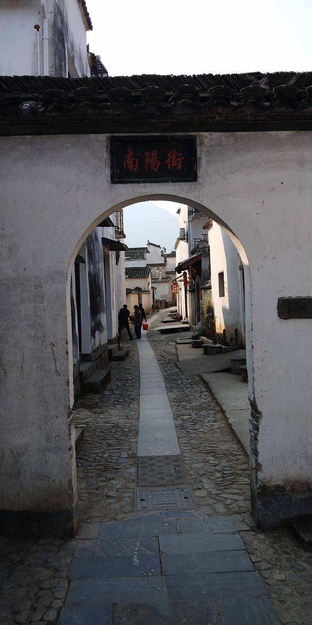 一早8点多,大家出发前去南屏古村落,从宾馆出发,沿X029公路碧阳镇方向前行,再换Y029村镇公路行走7-8公里就到了南屏村景区,路途很好走,沿途有些村庄但行人很少。村子是以叶、程、陈三姓居多而混居的古村落,叶氏占到60-70%。早就听说在南屏村中拍摄过许多著名的影视剧,较有名的有张艺谋的《菊豆》、李安的《卧虎藏龙》等,村前是大片已收获的田野,村口有许多百年以上的古香樟树高大挺拔,村中古老的民宅、祠堂、学堂等建筑物众多,街巷蜿蜒曲折如同迷宫般,据说有72条街巷,参观需购买门票,线上30,线下60,购票参观免费导游解说。
