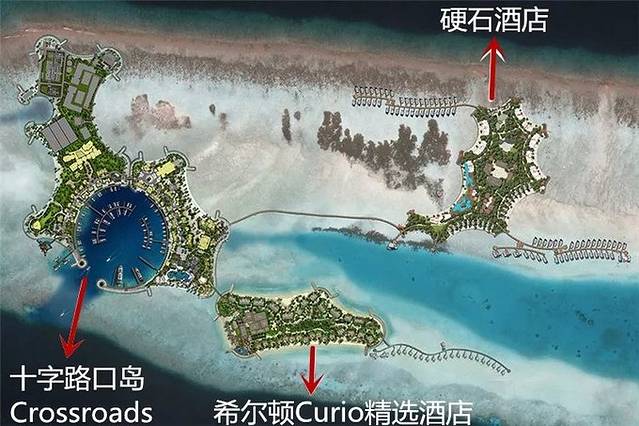 硬石酒店与十字路岛Crossroads岛、萨丽泻湖岛SAii Lagoon Maldives三岛之间有栈桥相连,住在硬石酒店,你可以共享十字路口岛的设施,相当于花一份钱玩转两个海岛,是不是超级划算~