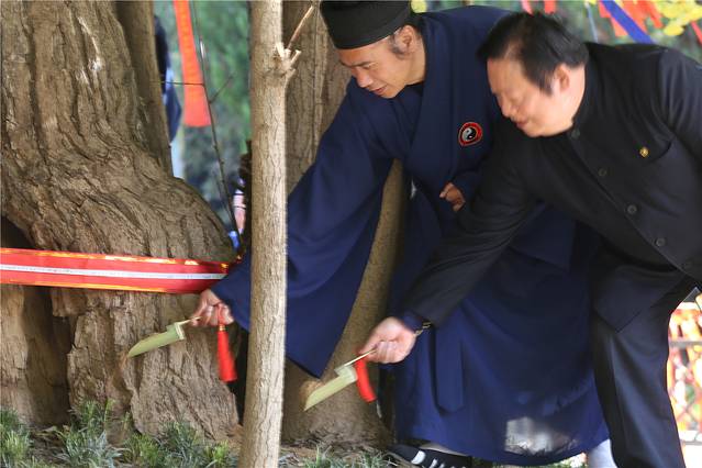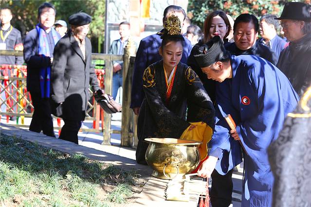 上午10时许,终南山古楼观历史文化景区宗圣宫遗址前,莅临现场的领导、文化界嘉宾和热心群众共同完成了培土仪式,将取自老子故里的土壤培植到老子手植银杏树下。随后,西安曲江楼观道文化景区管理有限公司总经理王明宣布2019楼观·鹿邑·函谷关——第四届“中华老子古银杏文化节”正式开幕,西安曲江楼观道文化景区管理有限公司肖永侠女士为《千里寻迹图》最后一站钤印。典礼后半程,舞蹈《踏歌》、古琴演奏《采薇》、秦腔、武术表演等一系列精彩的文艺演出将活动气氛推向高潮。